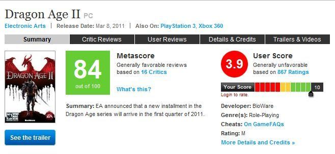 Is there some kind of organized campaign against DA2? The user reviews at Metacritic seems overly critical.