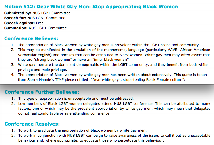No, not gay appropriation. White gay male appropriation. Asian, African, Aboriginal and Eskimo gay males are fine to continue as they please.