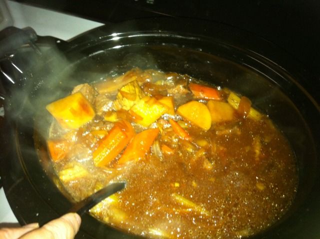 Just put a stew into the crock pot. Pictures in 8 hours.