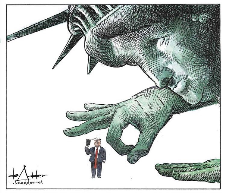 If the artwork looks a bit familiar, Michael De Adder is the Canadian cartoonist who lost his 17-year position at Brunswick News for posting this cartoon: