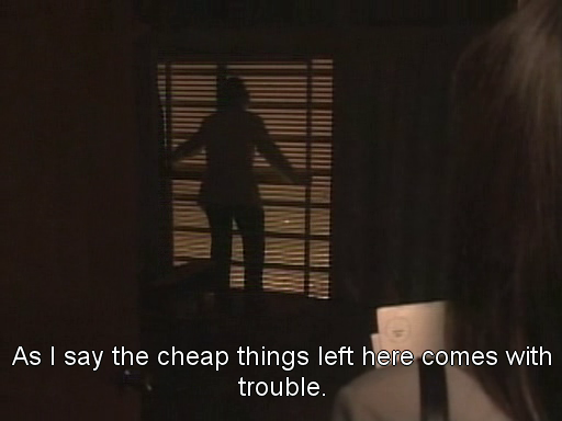 Specifically, it’s from the original direct-to-video Ju-on, aka Ju-on: The Curse, aka “pre-Grudge Ju-on”, which happens to be up on youtube here. (Personally, I find the low-budget spareness of the originals waaay more compelling than any of the bigger budget film incarnations – Curse and Curse2 are both fantastic. And are literally 50% the same movie, but hey)